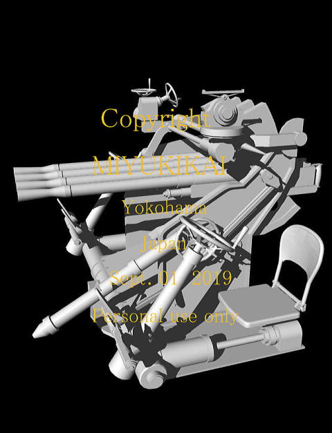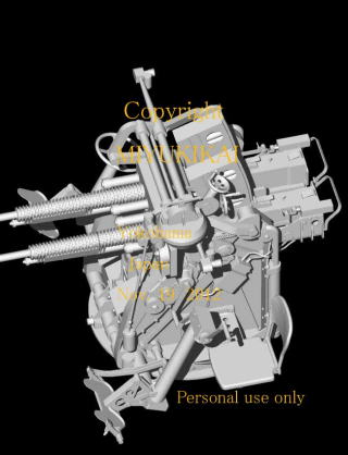 フランスのオチキス社から、ライセンス生産権を購入して、1937年頃から制式化した機銃である。 写真資料が25mm機銃に比して少なく、CG制作は困難を極めた。 艦載型は下の写真のやうに、植木鉢を逆さまにした形のペデスタルに載せられている。 一方、陸用は三脚上にマウントされている。