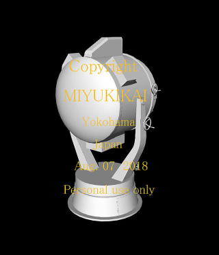 、この「装備図」は「三角法投影図」ではなく「一角法投影図」」と判定し、CG しました。 これは重大な問題で、「一角法投影図」」とすると、双眼鏡を対物レンズ側から見た場合、「移動電輪」は左側に、「彩鏡筺(フィルター入れ)」は右側に取り付けられていると読めます。